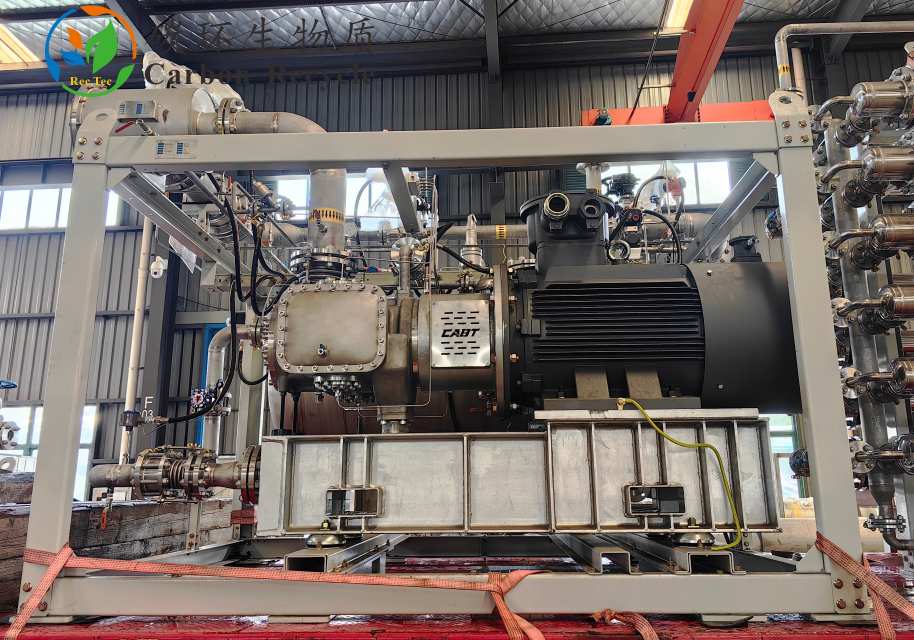 壓縮單元選用的無油單螺桿壓縮機,系統(tǒng)采用去離子水潤滑,潔凈、無油,機頭的容積效率(Max)≥95%,與介質接觸的殼體、轉子、軸承座、蓋板、緊固螺栓等金屬部件均采用316L不銹鋼材料制造。螺桿及星輪片使用SINUMERIK數控加工軟件,由五軸聯動加工中心加工制造,殼體由臥式加工中心加工。且使用三坐標測量儀進行形位公差檢測,確保加工精度。螺桿曲面輪廓度為±0.01mm,粗糙度,螺桿及星輪不平衡度優(yōu)于G1級。壓縮機的嚙合副加工精度高,磨損小,振動小,噪音低。